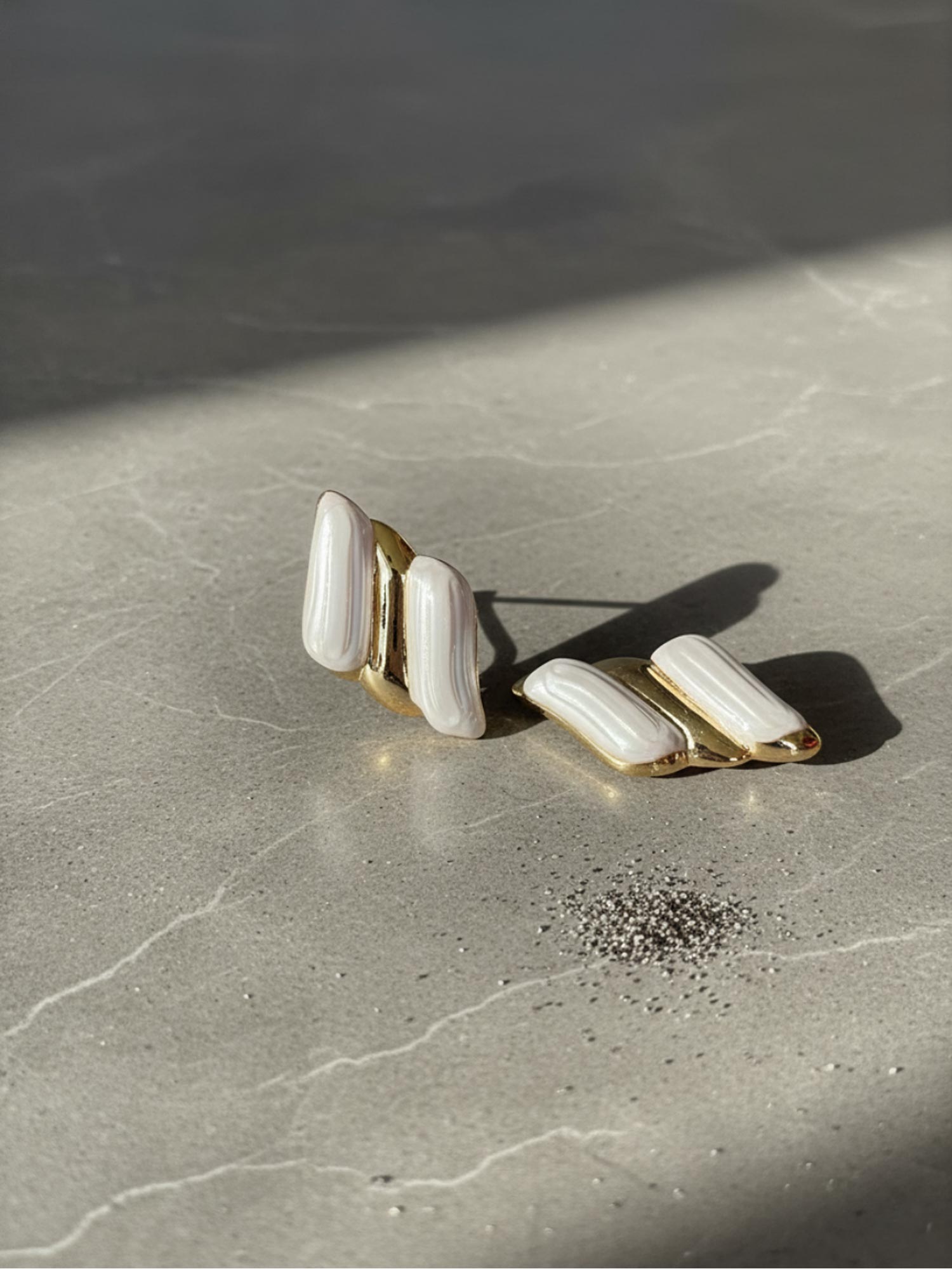 These earrings feature gold and pearly white enamel detailing, making them a great choice for party or formal wear!