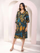 This vibrant printed strappy dress features vertical smocking at the front and back, making it super comfortable and wearable for long hours.