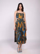 This printed V-neck dress features 3/4th balloon sleeves and a cut-out detail at the waist. It has an elasticated back for comfort and looks great on all body types!
