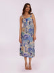 This abstract printed dress features a high neck with a v-cutout detail and 3/4th balloon sleeves with elastic, so that you can adjust them to your comfort. It has pockets on both sides. It’s a fun, flary dress that looks good on all body types.