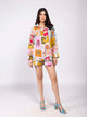This bright and stylish floral printed co-ord set features a balloon sleeved shirt with a mandarin collar and a comfortable skort with pockets on both sides and an elastic waistband for easy wear!