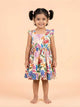 Fun, cheerful, and full of personality, this adorable dress features a playful mix of abstract motifs and colorful polka dots. The lively print adds a joyful pop of color, making it perfect for everyday adventures and special outings alike.