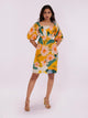 This abstract printed midi dress features thick ruched strap and elastic at the back for a comfortable fit. This dress is very versatile and looks great on all body- types, including women looking for stylish maternity wear.