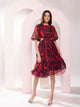 This stylish printed dress features V-neckline with a bow that can be tied in multiple ways. It has full elasticated sleeves and elastic at the waist, ensuring all-day comfort!