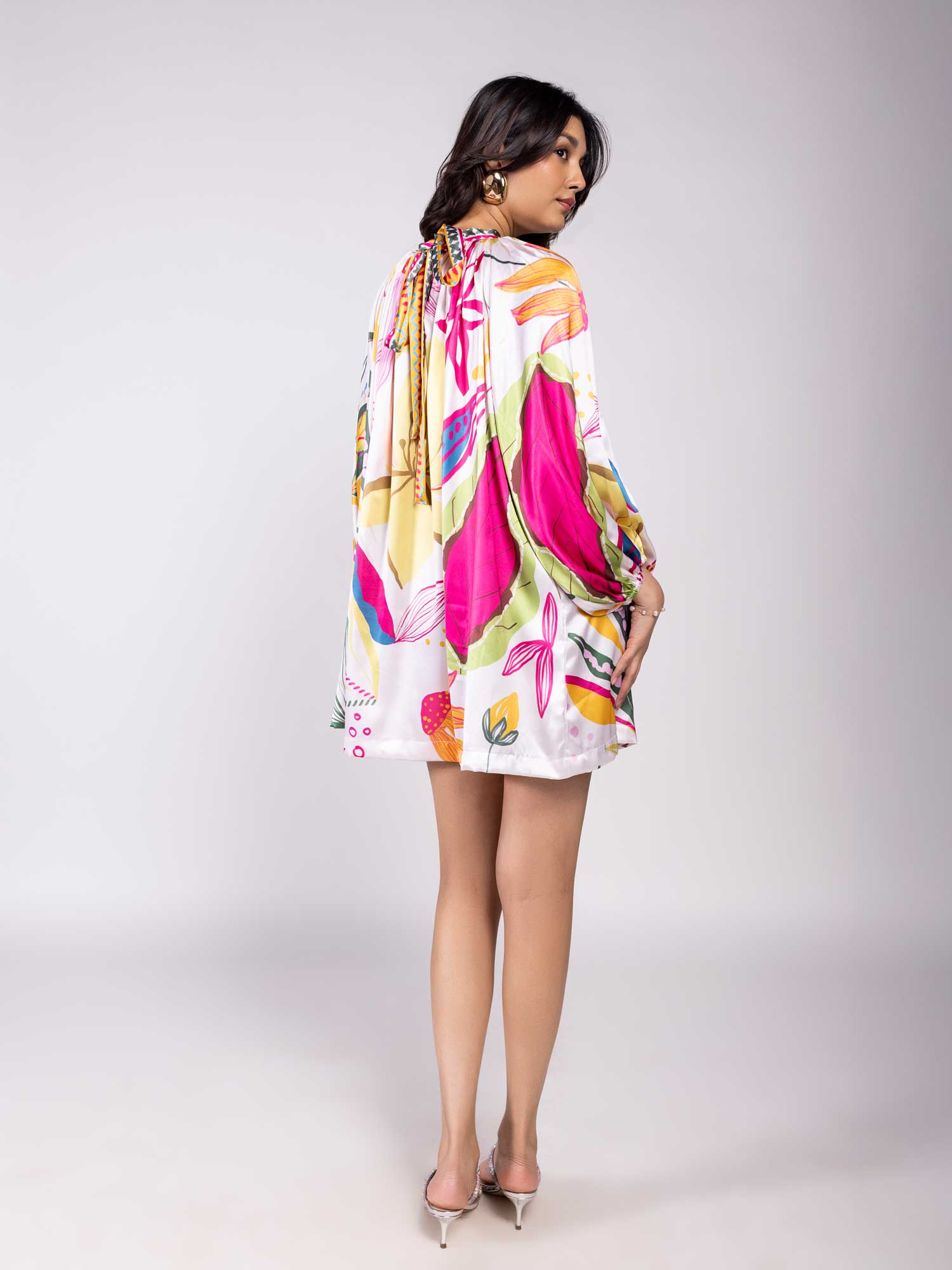 This stylish and flirty dress has an easy-breezy silhouette with a closed neckline and full elasticated sleeves. Be beach-ready with this dress that looks good on all sizes (also makes a perfect maternity dress!).