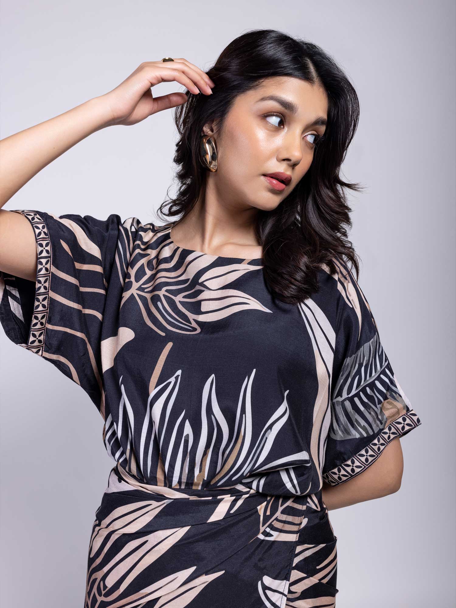 This stylish printed dress features a top with an attached wrap skirt that can be worn and styled in multiple ways, making it size-friendly and perfect for all occasions!