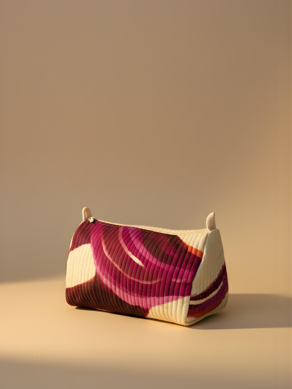 Meet your everyday organisers — thoughtfully designed and beautifully crafted from 100% Viscose silk . These quilted pouches come in two versatile sizes, making them perfect for storing everything from makeup, skincare, and accessories to stationery, travel essentials, or baby items.