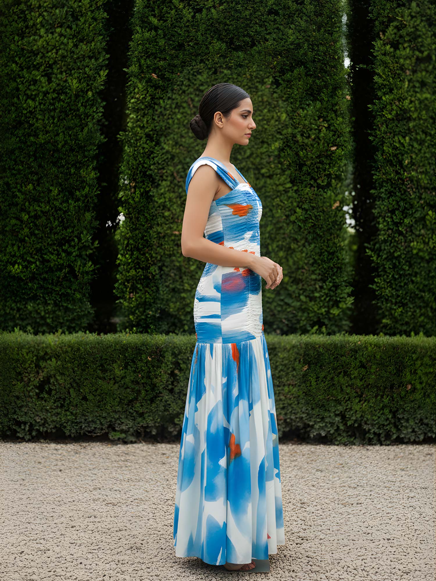 This stunning floral printed maxi dress features stylish spaghetti straps and ruching detail till the waist with a fully smocked back for a comfortable fit. The dress falls effortlessly and looks uber stylish, making it perfect for any event.